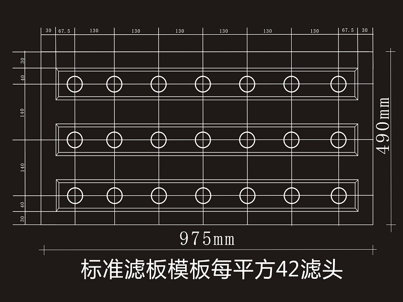 (整體濾板模板縱向間距130mm,橫向間距140mm)