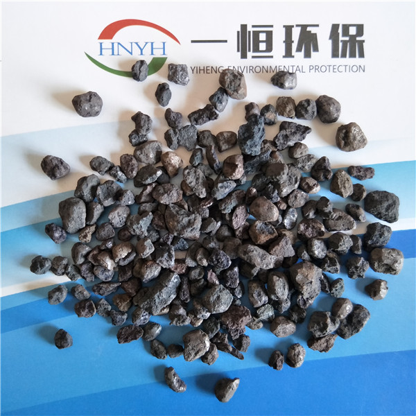 海綿鐵濾料具有較好的還原活性和高比表面積特點,作為水除氧劑的海綿粒度為2-5mm,孔隙率極高,比表面積大,活性高,極易與水中的氧發生反應生成Fe3O3,從而達到除氧目的,反應產物為不易溶于水的絮狀沉淀,被攔截下來,用一定強度的反洗水可以沖洗干凈。